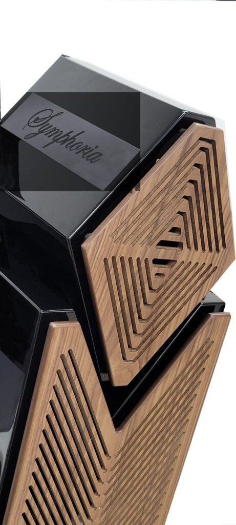 Two years in the making, Symphoria represents one of the most refined expressions of GershmanAcoustics’ artistry — where passion, precision, and performance unite to create an experience beyond sound. Every detail is meticulously handcrafted to evoke emotion, capturing the soul of the music with breathtaking realism. Design Beyond Time Proudly Made in Canada, Symphoria features Gershman Acoustics’ exclusive technologies — SSAS(Separate Sub Alignment System) and BCT (Back-Wave Control Technology) — for unparalleled clarity, lifelike imaging, and natural bass extension. Its sculpted form blends art and science into a statement of enduring beauty and acoustic perfection. A very advanced, innovative, acoustically designed and extensively braced bass module incorporates a patented Bass Trap system for each of the 8″ woofers. This revolutionary technology, originally developed for the Grand Avant Garde and also used in the world-renowned, award-winning 30th Anniversary Black Swan, effectively eliminates back-wave reflections, delivering deep, controlled, and distortion-free bass with exceptional speed and precision. A custom-designed midrange driver ensures smooth, realistic vocals with extraordinary detail and a natural sense of air around instruments. Adding to its elegance, Symphoria features exquisitely crafted walnut wood grills, each precision-cut with a carefully calculated pattern of slots designed for maximum acoustic transparency. These grills have become a Gershman Acoustics trademark — celebrated for their unique beauty, craftsmanship, and seamless integration of form and function. Unforgettable Sound. Unmistakable Beauty. While moderately priced in the world of high-end audio, and not the most expensive model in the Gershman Acoustics line, Symphoria stands out as one of the most stylish and musically engaging loudspeakers ever created. From the deepest foundation to the finest detail, it transforms every performance into a moment of pure connection — a masterpiece that commands both the ear and the eye.